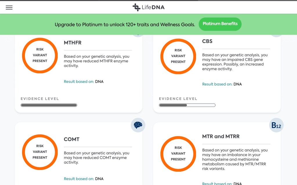 I had a DNA test done through ancestry. I sent the results to Life DNA and got some information. They had an offer on methylation genes so I had that analyzed. Out of 10 genes, 7 had risk variants. The variants are not unusual.